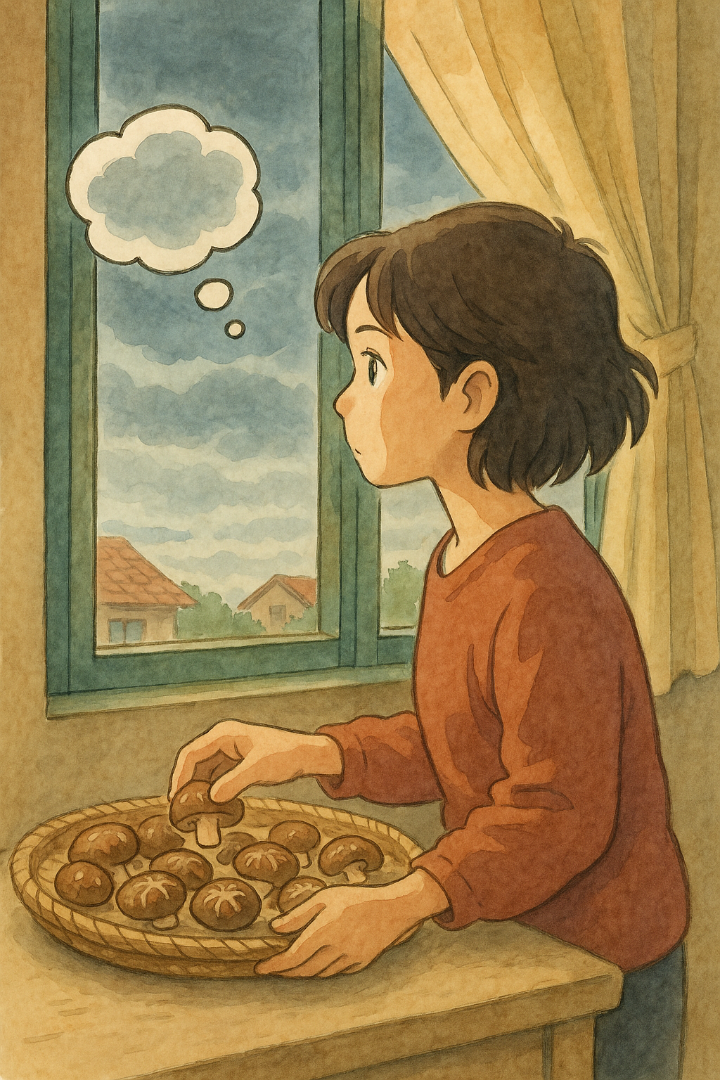 나는 표고버섯을 햇볕에 말리기 시작했다.
